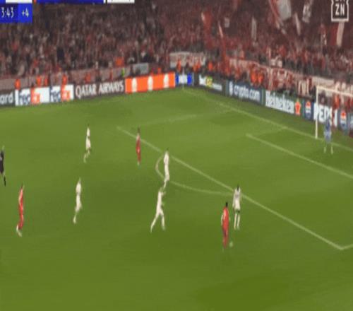 拜仁整个右路,包括但不限于奥利塞,存在感极大:第一球是帕夫洛维奇的得分,第二球却是右路围攻良久后,皇马密集拜仁右路,凯恩中路找到了射门机会。